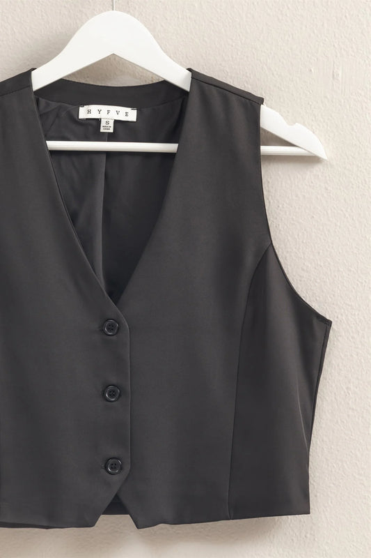 Malibu HF25A363-Sleeveless V-Neck Hidden Button Vest black