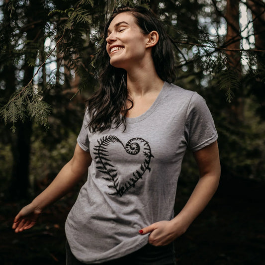 West Coast Karma Fern Heart Eco Scoop Tee in Heather Grey *Made in Canada*