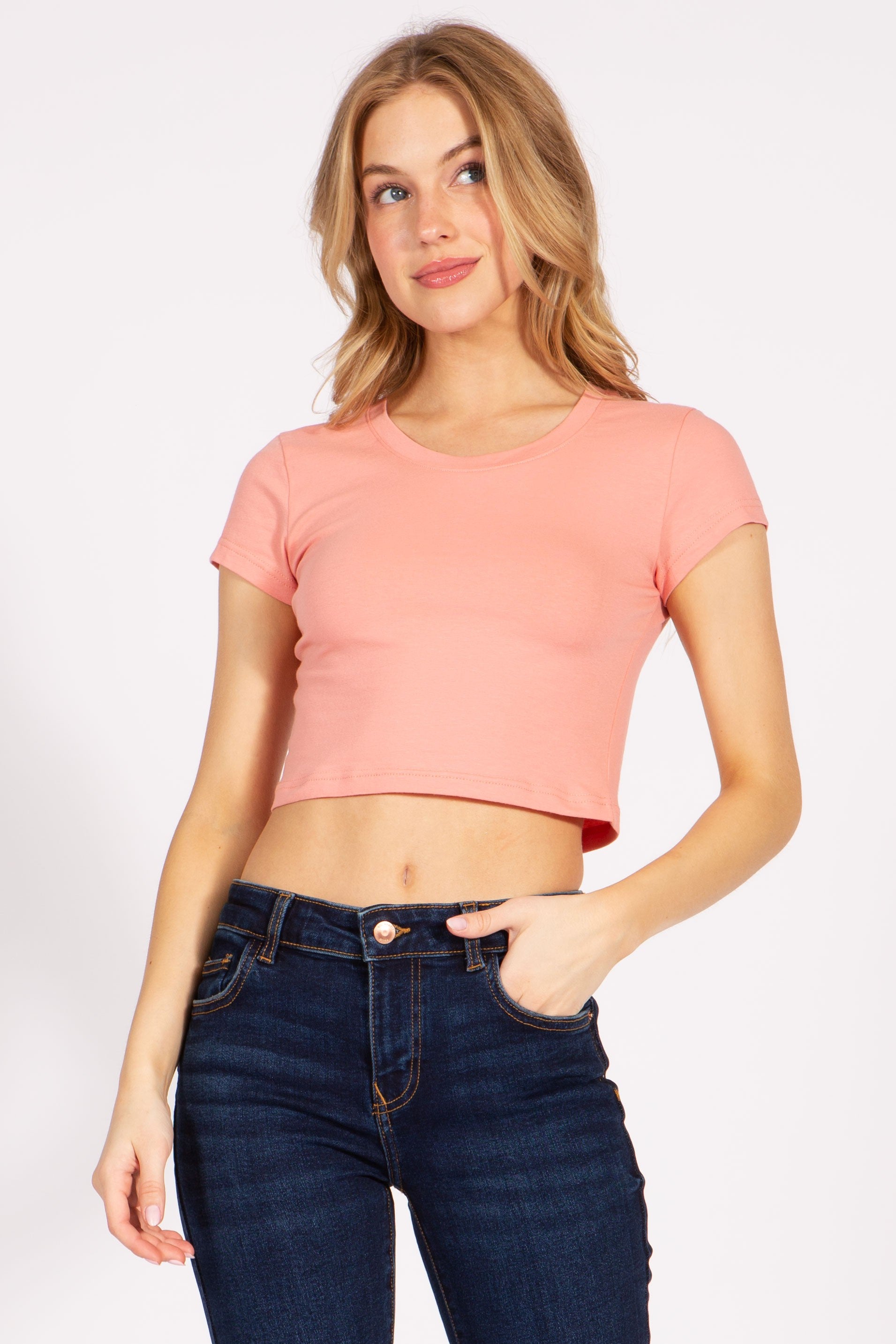 Basic Short Sleeve Round Neck Crop Tee Top 313cr mauve pink