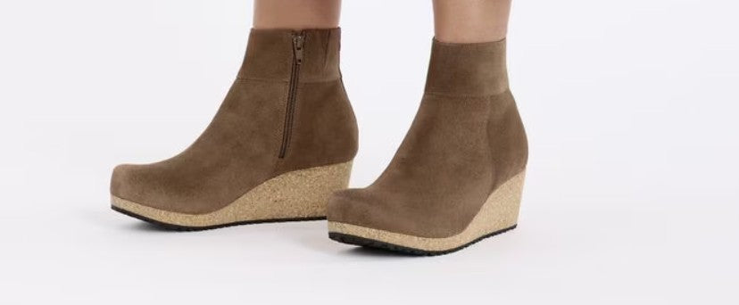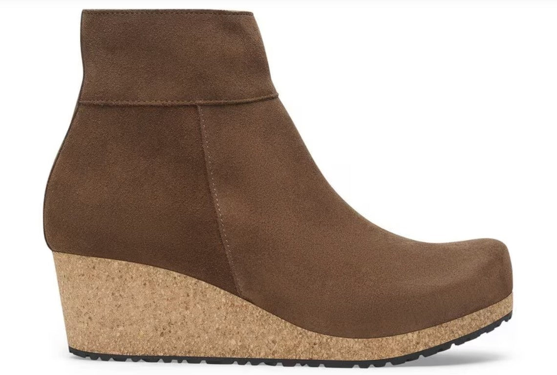 The Ebba ankle boot brings the contoured comforts of the BIRKENSTOCK footbed together with a cork wedge heel—all without adding pressure to the front of your foot. In smooth suede for a classic feel. Level up your style in comfort.
