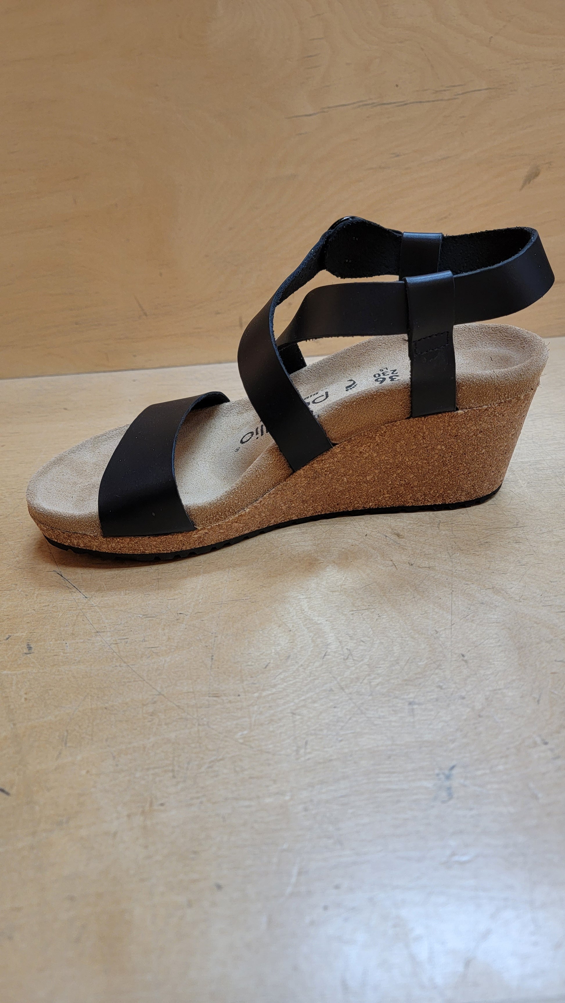 The Sibyl sandal from Papillo is a strappy wedge-heel sandal featuring narrow straps and elegant ring buckles. The upper is made from extra thick, oiled nubuck leather.