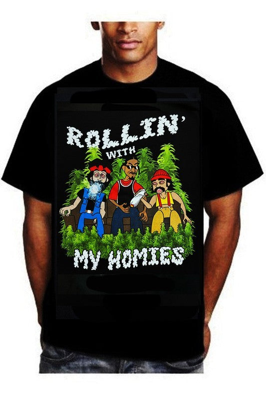Cheech & Chong rollin with my homies tshirt cx-s211