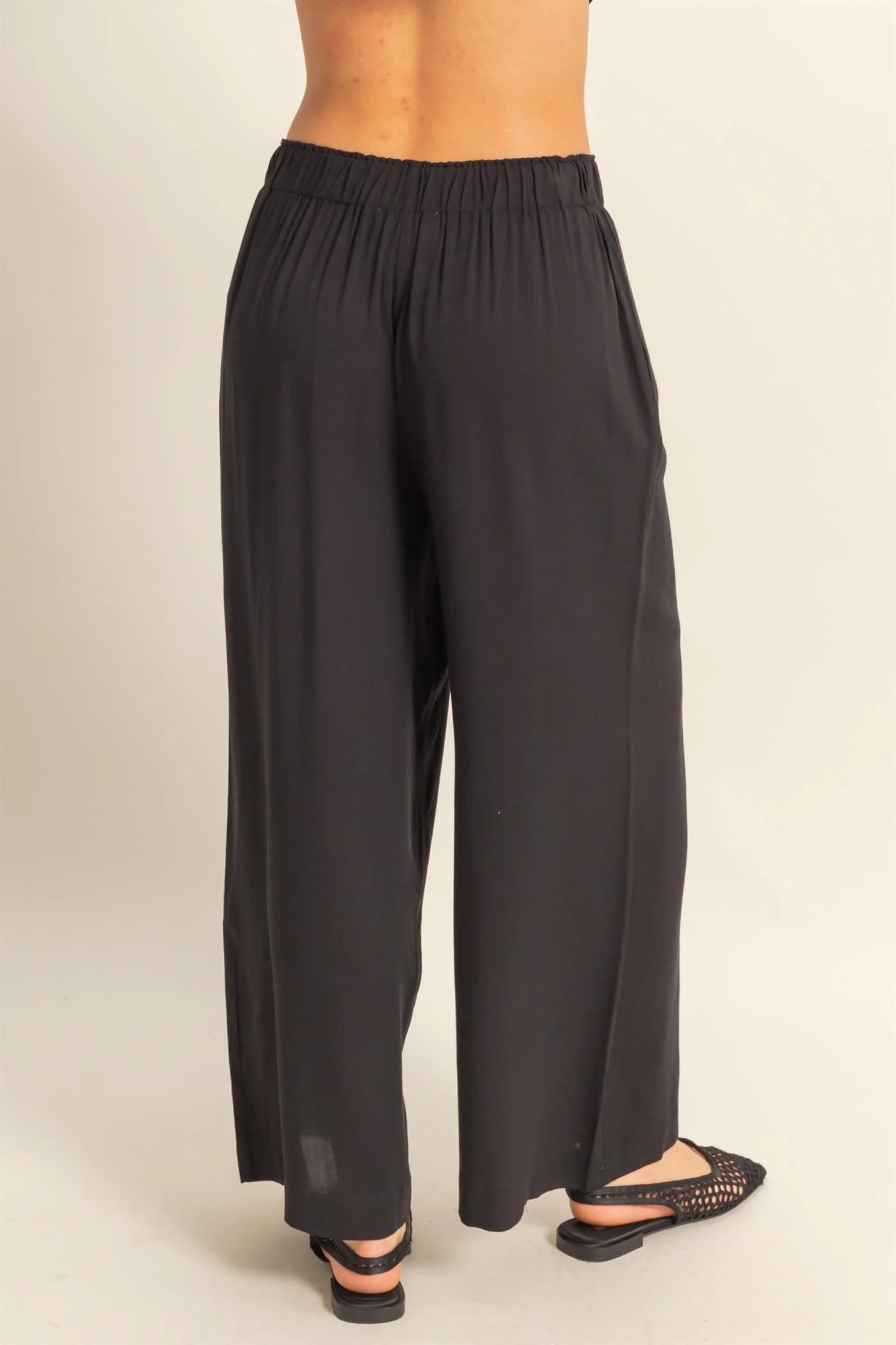 Malibu DZ25C192-High Waist Woven Wide Leg Pants black