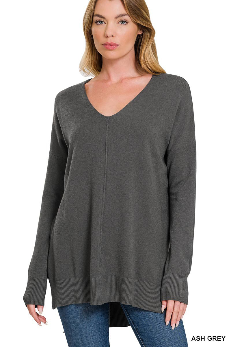 Hi LO hem vneck center seam sweater
