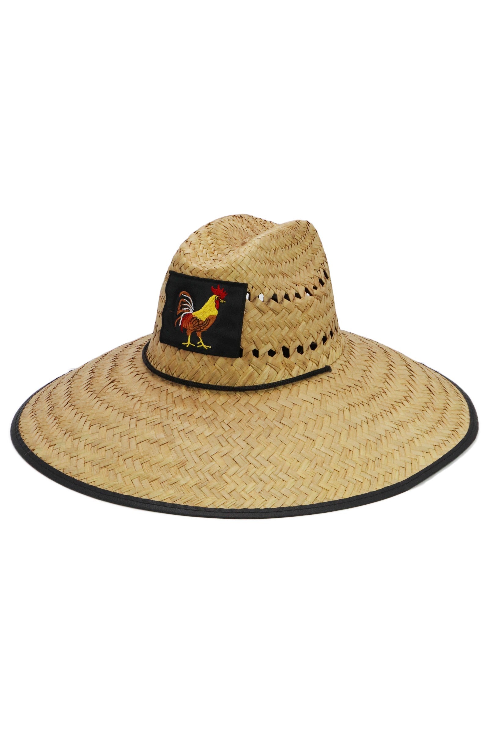 Malibu rooster vegan leather trim straw lifeguard hat cb-029