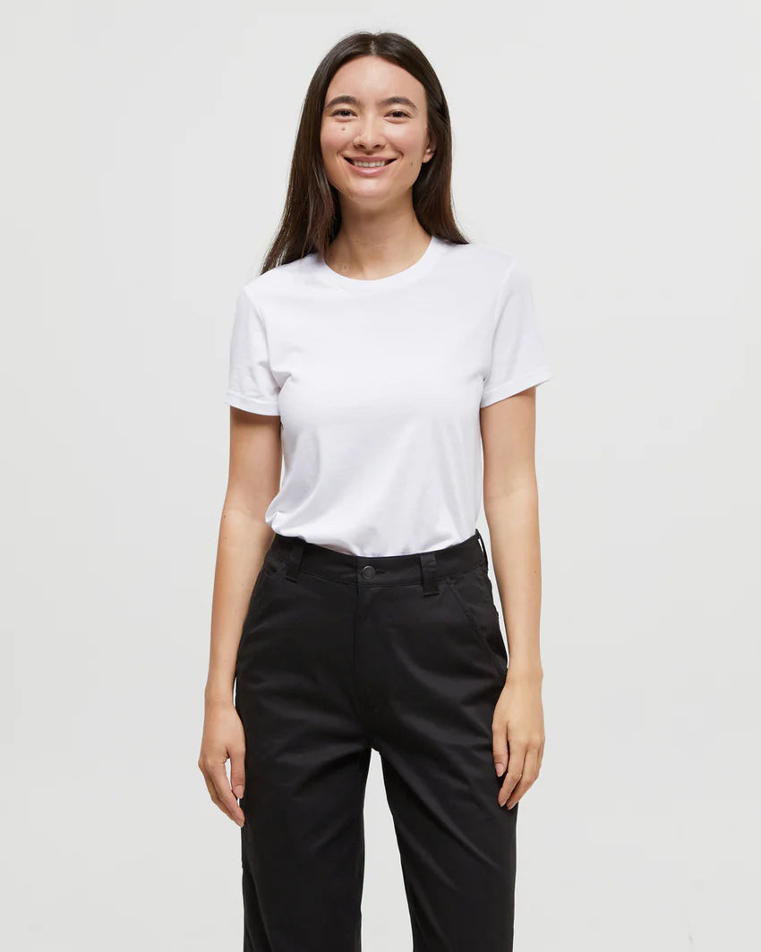 What can we say about this earth-friendly tee that it doesn't already say itself? This classic, straightforward piece is a sustainable staple for any wardrobe.