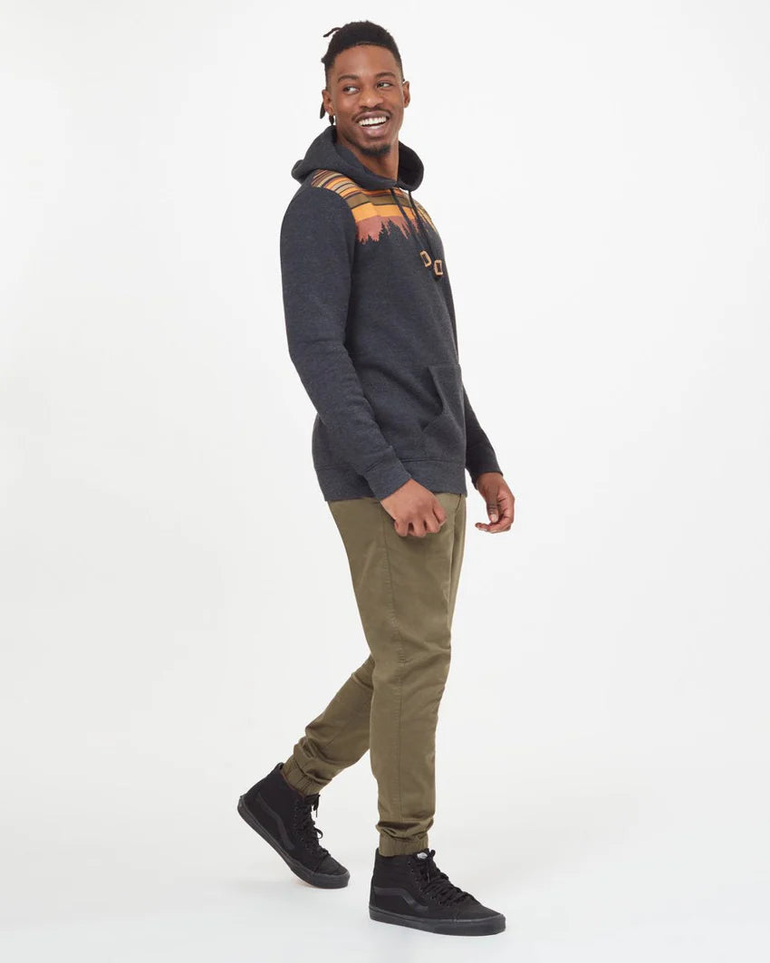 Our classic Juniper treeline graphic gets a retro update. This hoodie cuts down on waste, water usage, and carbon emissions all while keeping you comfy.