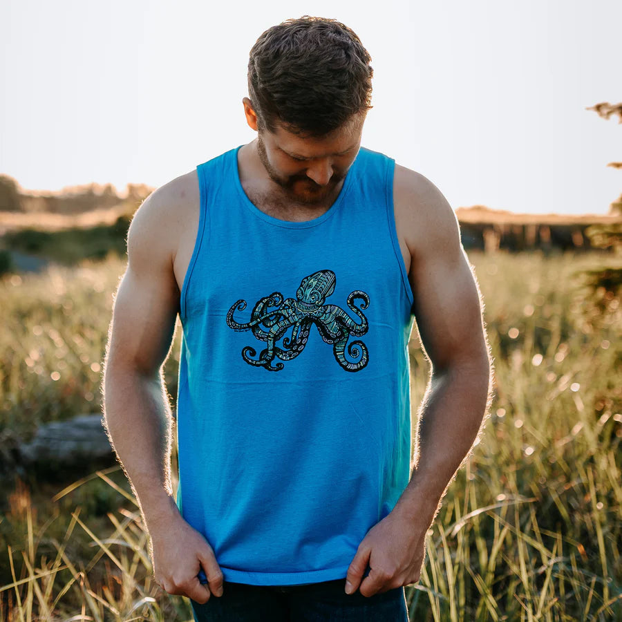 Detailed, hand drawn Geometric Octopus design, locally silk screened with eco friendly ink.