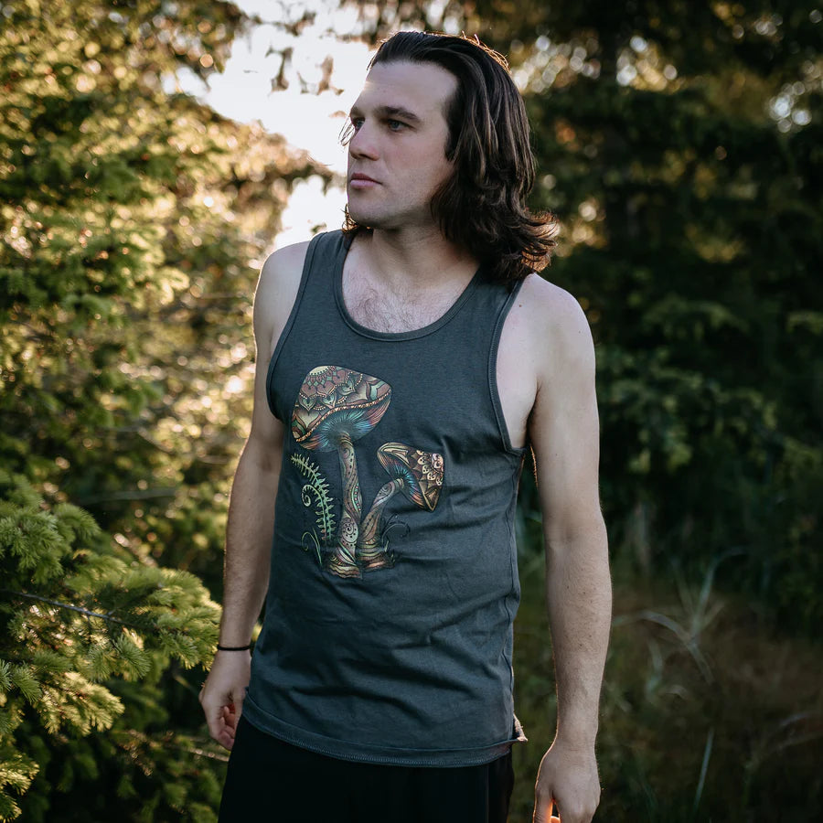 Detailed, hand drawn Retro Mushroom design, locally silk screened with eco friendly ink.