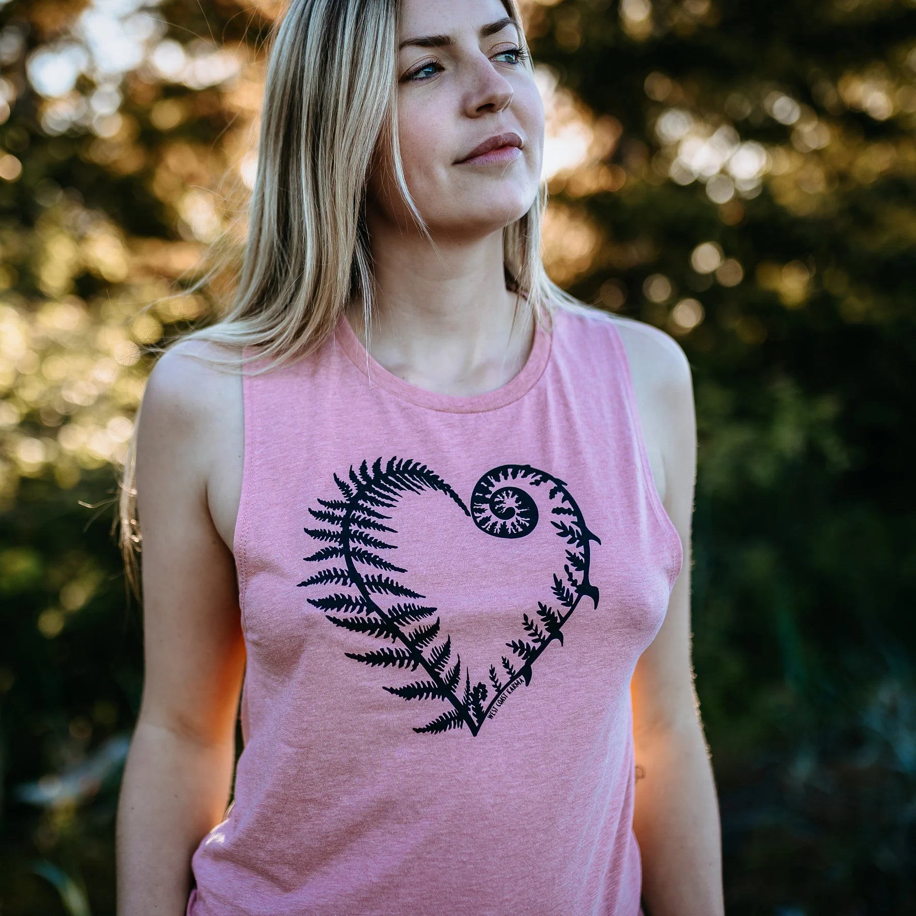 West Coast Karma Fern Heart Muscle Tank in Desert Pink
