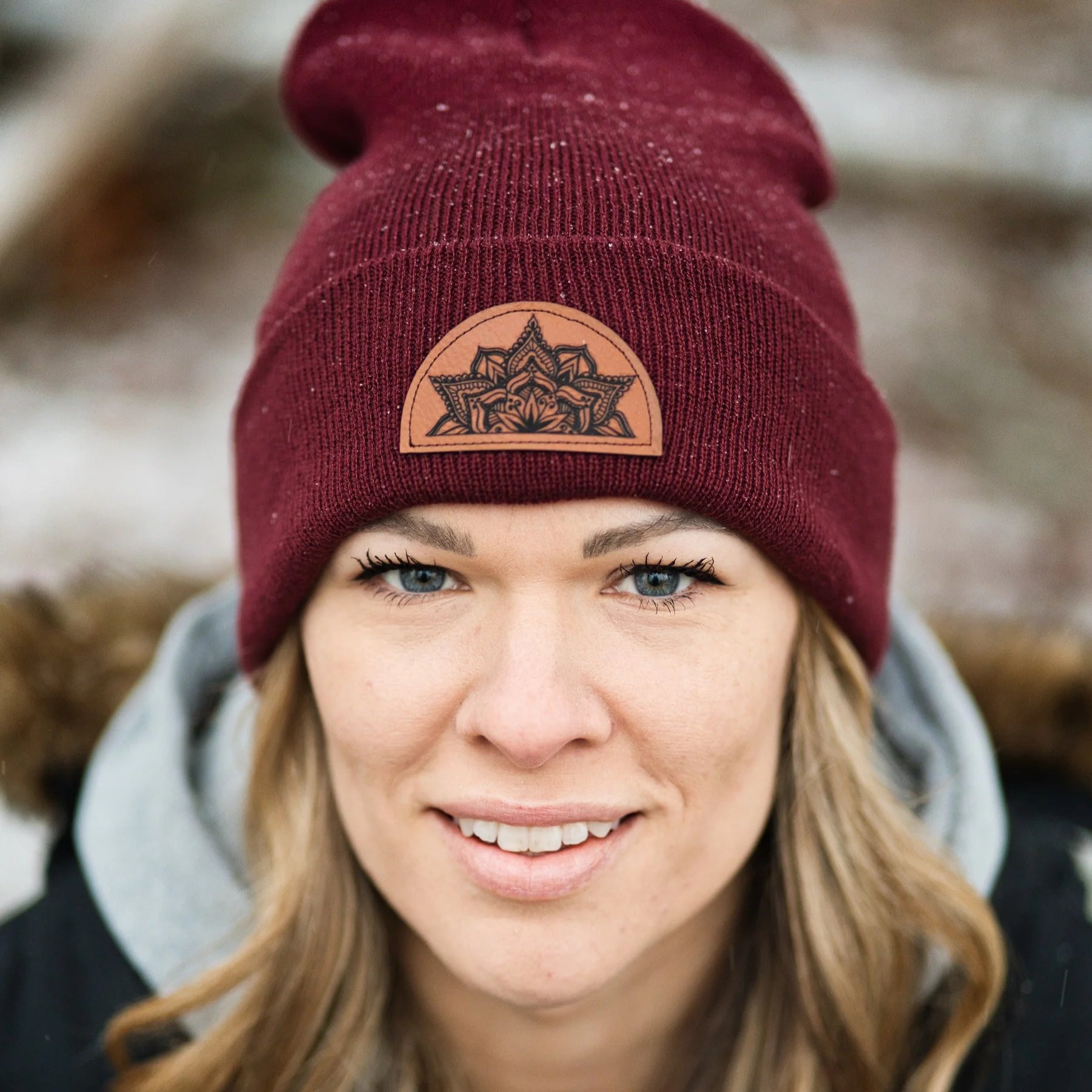 The Nature Bear Toque is perfect for cold winters, outdoor activities or walking around town. Locally engraved vegan leather patches.
