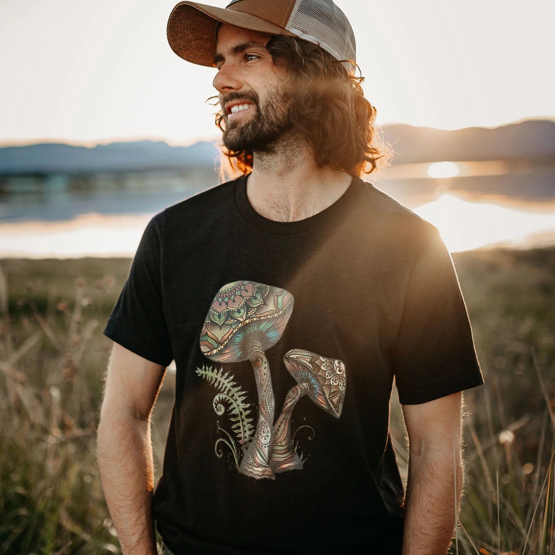 This is a unique form of artistic printing! Because of the nature of these hand printed designs there may be some variances in the colour blends. To preserve the longevity of the print we recommend washing this tee inside out with similar fabrics.