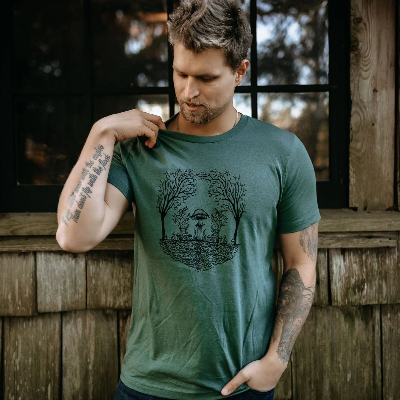 This hand drawn Mycelium Tee fits like a well-loved favorite. Printed locally using eco friendly inks.