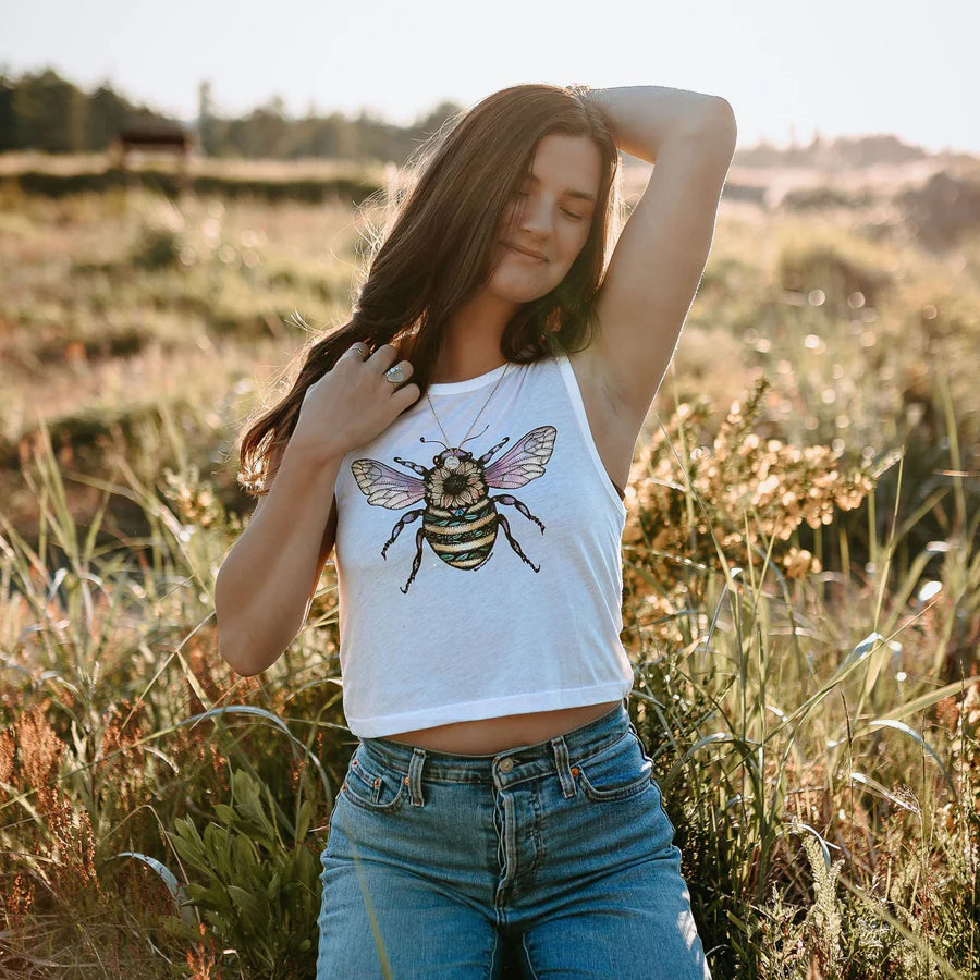 Beautifully detailed, hand drawn Sunflower Bee design. Locally silk screened with eco friendly ink.